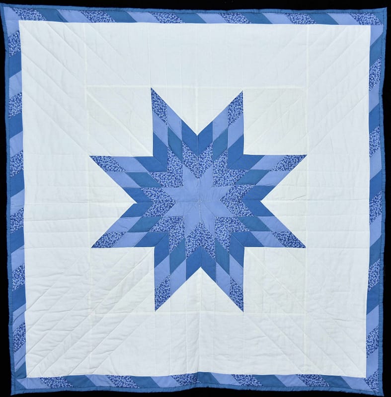 Linda chose the Lone Star Quilt which is a traditional Native American quilt. Native Americans believe when someone dies, their soul becomes a star in the sky. The quilt honors the ancestors. It is gifted to someone to honor a milestone in their life. Linda gifted this quilt to her daughter, Maria, for her college graduation.