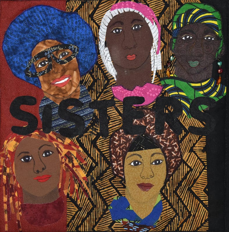 Description: When the proposed theme for our Annual Exhibit was Faces, I could not just make one face. I made these faces to represent all of my sisters. I used the appliqué method for creating my faces, painted lips and one even has beaded earrings. Like my sisters, the faces are of different colors and different shapes. The small quilt is supposed to say that although my sisters have their own sense of style and personality, they are all strong, successful women.
