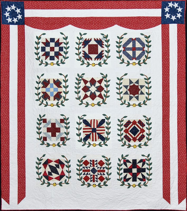 Description: This is a quilt honoring those who served in World War I. Since 1922, members of the VFW have sold Red Poppies on Veterans Day 11 November. The proceeds provide support for the veteran services and welfare. The Disabled American Veterans of World War I officially organized on 25 September 1921 and had their first Forget-Me-Not Day in 1926 now observed on 10 November. Red Poppies and Blue Forget- Me-Nots remind us of the sacrifices made by the men and women who have served our country. Now I realize why we see people selling Red Poppies on street corners today. This quilt project began in 2014, became a UFO in 2015, a work in progress in 2019, and finally finished on June 5, 2020.
