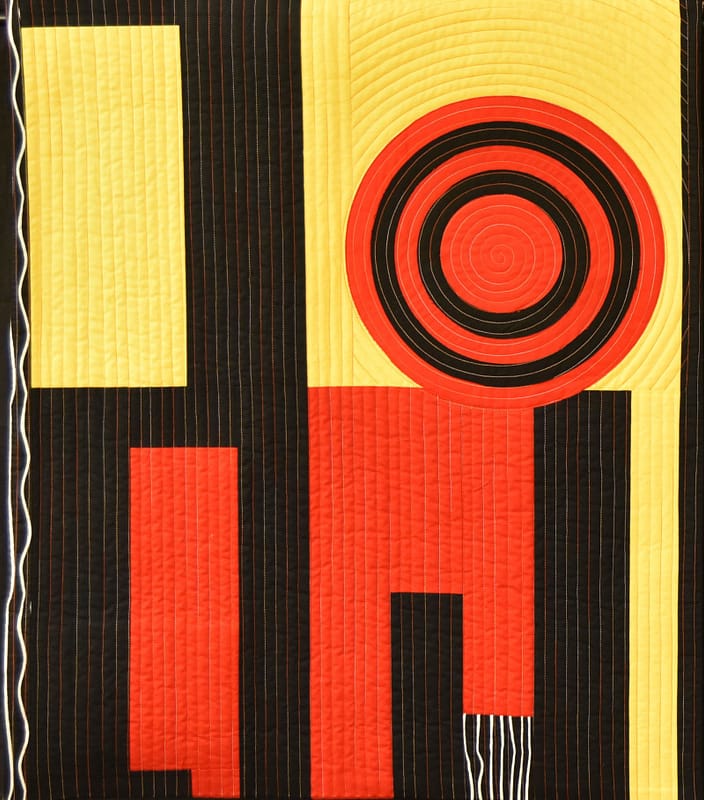 Description: The more things change, the more they stay the same. This domestic machine quilted fabric piece is based on a rya rug wall hanging I did in the 1970’s. The design still plays well in 2021.