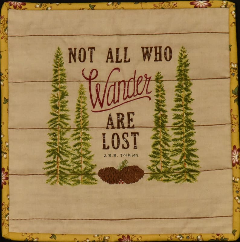 Description: Many times, when riding with Joanne Walton to an event or meeting or returning from one Joanne would say let’s take this road and see where it leads us. So, we would wander around and find a different way home. We might find a new road or a neighborhood and see things unimagined. She has taught me you don’t always have to take the same way home. You can take the long way home. When I found this piece of fabric, it immediately made me think of those wandering days. One of the things I treasure is being friends with such a fun and adventurous person as Joanne Walton!!
